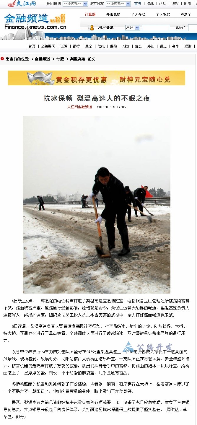 上一篇:【抗冰雪保畅通】众志成城抗冰雪全力以赴保畅通——梨温高速鹰潭管理处积极应对恶劣天 下一篇:总公司党委书记傅春华深入梨温高速赣浙处检查指导工作