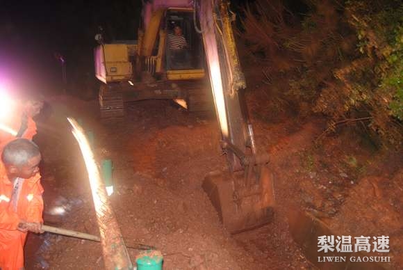5月8日晚6时,沪昆高速K656公桩遭受泥石流冲击,路面大部分被泥石覆盖,沪昆高速东乡往南昌方向暂时封闭。梨温公司连夜组织人员抢险,经过两小时奋战,高速公路恢复正常通行。