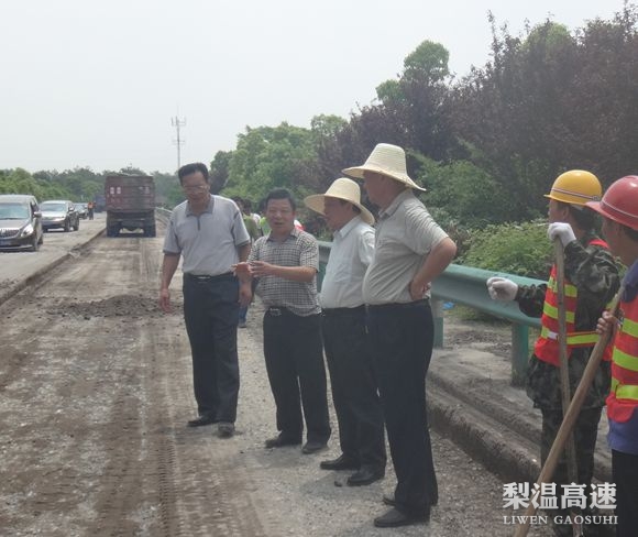 5月13日,总公司党委书记傅春华深入梨温高速,察看弋阳互通改造和上饶经开区收费站工程进展,公司总经理魏和仁、副总经理邱国土等陪同。