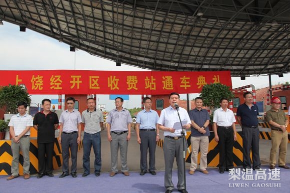 8月29日上午10时56分,随着上饶市副市长朱寅健下达开通令,梨温高速上饶经开区收费站正式开通运营。此前,在上饶经开区站收费广场,上饶市政府、上饶经济技术开发区管委会、各参建单位、接管单位梨温高速杨梅岭管理处联合举行了简单开通仪式。省交通厅副巡视员夏太胜致开通仪式辞,上饶市副市长朱寅健,江西公路开发总公司总经济师钟家毅,梨温公司领导周洪达、邱国土等参加开通仪式。