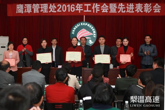3月3日,梨温公司鹰潭管理处召开2016年工作会暨先进表彰会,梨温公司副总经理邓琼华出席会议并为该处先进班组、先进工作者代表颁奖,该处班子成员、站级以上干部、先进代表、员工代表共近50余人参加会议。