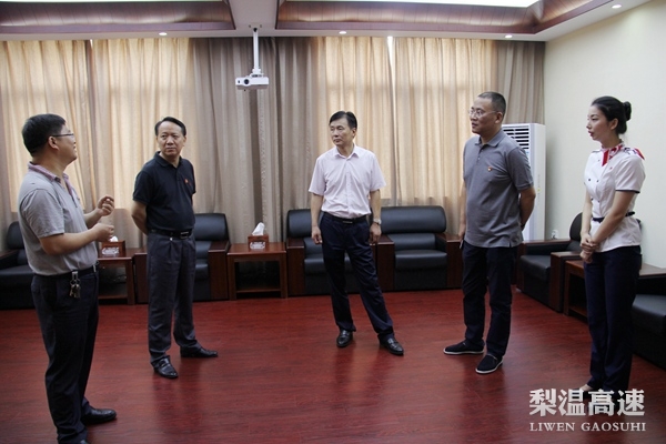 随后,王爱和一行又来到该所办公楼,参观该所文化墙、培训室、办公环境等。在认真听取该所关于“城市快门”服务品牌的打造计划后,王爱和表示赞赏,他要求围绕制定的目标方向,合理规划,统筹安排,坚持高起点、高标准、高要求,注重打牢基础,坚持不断创新,全面抓好细节,真正将南昌南收费站打造成江西交通的行业样板。王爱和走进员工培训室,驻足观看员工文明服务礼仪培训,他指出,“台上一分钟、台下十年功”,员工培训是提升员工业务水平的重要手段,要通过抓好员工培训质量,不断深化培训成效,努力提升江西高速公路窗口文明形象。他叮嘱该所负责人,正值高温天气,要合理安排好员工作息时间,做到劳逸结合,在正常开展工作的同时,确保员工身体健康。
