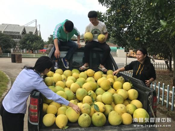 该站正组织采摘。走进院子,柚香扑面而来,沉甸甸黄灿灿的大果实着实吸引人。果园里,欢笑声不断,员工们正拿着剪刀,抬着箩筐,忙碌着采摘马家柚,他们相互协作,有的剪枝,有的投框,有的采摘累了,席地而坐,顺手剥开一个马家柚,正吃的津津有味。路边的车上,已装满了马家柚,负责搬运的员工正擦着汗,准备将“战利品”运往仓库,整个广丰站都沉浸在丰收的喜悦当中。