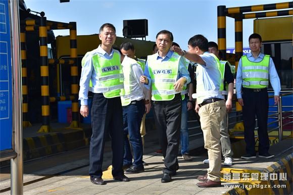 4月25日,集团收费管理部部长陈志庭赴南昌南管理中心赣浙界梨园站调研指导工作,中心党委副书记、纪委书记雷霆陪同调研。