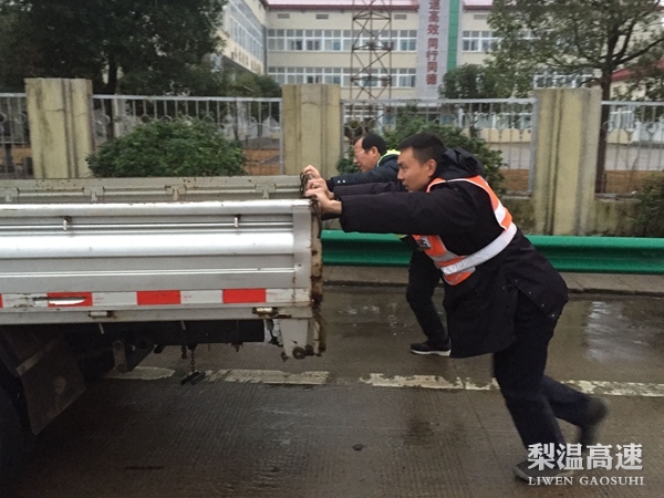 昨日下午16点50分,一辆小货车在驶入杨梅岭收费站时突然抛锚,停留在收费道口。经询问得知他们是从浙江返回铅山过年的务工人员,看着他们归心似箭,收费站长当即叫上机动人员帮助推车,经过多次反复助推,小货车终于重新发动,看着收费站工作人员因徒手推车冻得通红的双手,司机表示由衷的感谢:“你们让我感到家乡的温暖”。(南昌南管理中心)