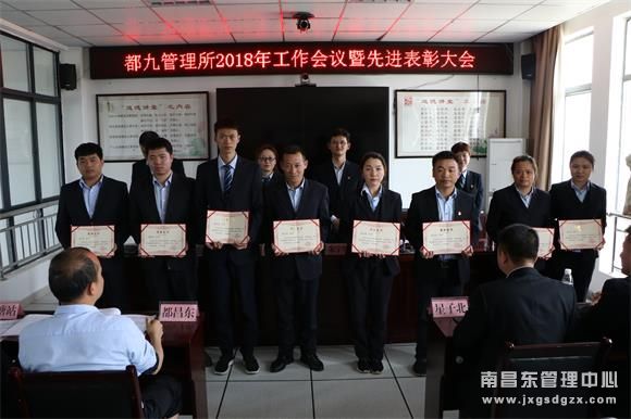 3月28日上午,都九管理所召开2018年工作会。该所副站级以上干部、先进工作者、员工代表及处机关全体员工共40余人参加会议。