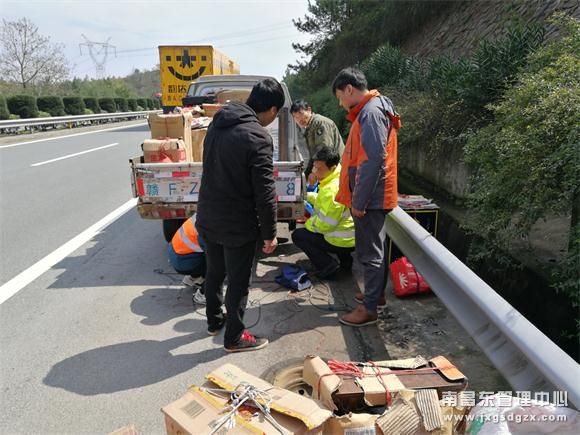 这时,南昌南管理中心志光养护站技术人员巡路发现后,立刻下车,首先做好应急车道的交通管制,同时提供巡路车辆千斤顶,积极帮助车主更换轮胎。最后,终于顺利帮助车主脱困,车辆恢复正常行驶。