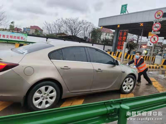 12月29日中午,一辆小客车驶入南昌南管理中心东乡收费站入口1车道忽然熄火,司机尝试连续打火后,仍无法启动车辆,无奈停留在车道内。