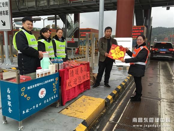 1月18日,正值南方小年,南昌南管理中心上饶东站联合信息中心开展“情暖春运,小年送祝福”活动,为广大司乘人员送上节日的祝福。活动现场,该站收费广场热闹非凡,只见团员青年志愿者们脸上洋溢着真诚的笑容,为路途劳累的司乘送“福”、对联和平安节,为过往司乘提供热水、地图、修车工具等,以最佳的精神面貌迎接每一位归途人,用温馨的服务让司乘回家路变得温暖。
