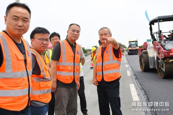 在2020年路面养护工程梨温高速鹰潭段路面铣刨摊铺施工现场,万良红就项目管理、施工质量、工程进度、交维保通等方面工作实施情况进行督导检查,万良红详细察看现场施工情况,仔细询问工程进度、材料质量和安全生产组织布置及落实情况。