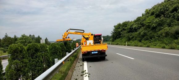 该养护站先对沿线中分带树木生长情况进行细致普查,组织养护施工人员进场作业。作业采用边修剪、边清理的方式,对中分带内的杂草、杂树进行了彻底清除。同时使用新型多功能绿化修剪车,多角度修剪桧柏造型。