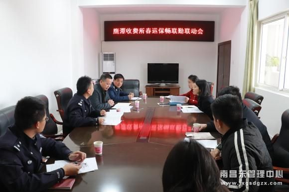 1月9日,南昌南管理中心鹰潭收费所召开春运保畅联勤动会,邀请了高速交警、高速路政、养护、排障施救等单位人员参加,共同部署安排春运保畅工作。