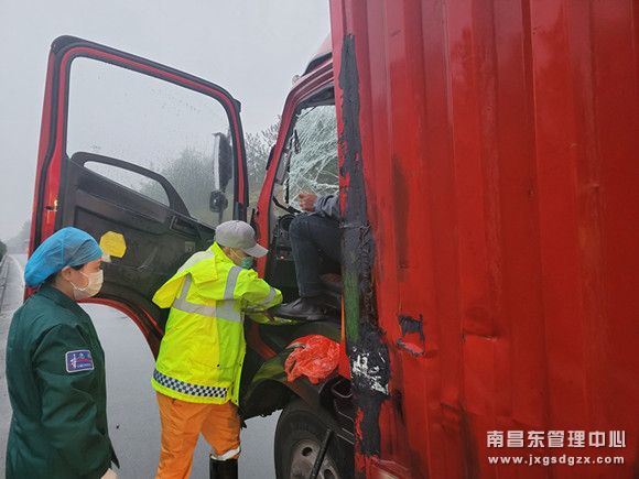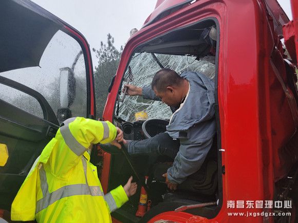 10月20日早上5点50分,在沪昆高速K485公桩往南昌方向发生一起货车追尾事故,导致后车驾驶员徐师傅被卡在驾驶室无法动弹,情况十分危险,c17官方网站清障救援队玉山中队快速出击,成功将司机救出,快速恢复高速畅通。