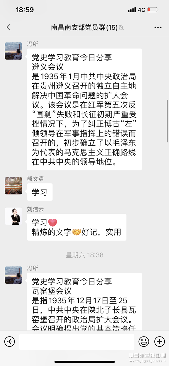 以线上线下相结合的方式,不断激发党员干部学习热情,掀起党史学习教育热潮。在学习指定文献的基础上,结合“学习强国”APP、微信群等平台,打造“指尖上的学习课堂”,定期推送党史学习相关辅导资料进行网上学习。通过微信群分享学习心得体会,切实激发党员们党史学习教育的活力。