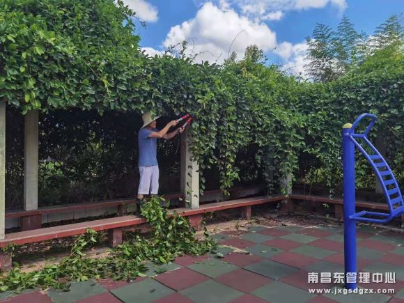 场景六:傍晚的余江收费站,辛苦了一天的同事终于迎来了下班时光,而余江站的谢桂林副站长,在忙完一天的工作之后,却背起了除草机,在草地上,除起了杂草,你如果叫他别干,快出来,傍晚草丛中的蚊子可多了。谢桂林一定会笑笑打趣道:“没事,反正我皮糙肉厚。”