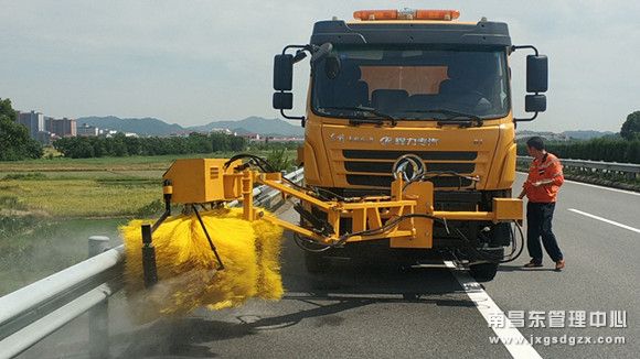 近期,东乡养护所引进一台新型护栏板清洗设备,投入到高速公路护栏板清洗作业,成为梨温高速及东昌高速400多公里的高效“美容师”。