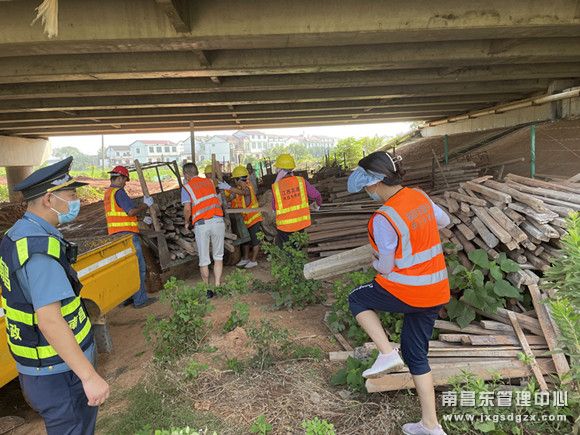 原来,该线养护人员在日常巡查中发现昌宁南昌连接线K11+400里河大桥处桥梁通道下有大量木柴等堆积物,存在极大安全隐患。