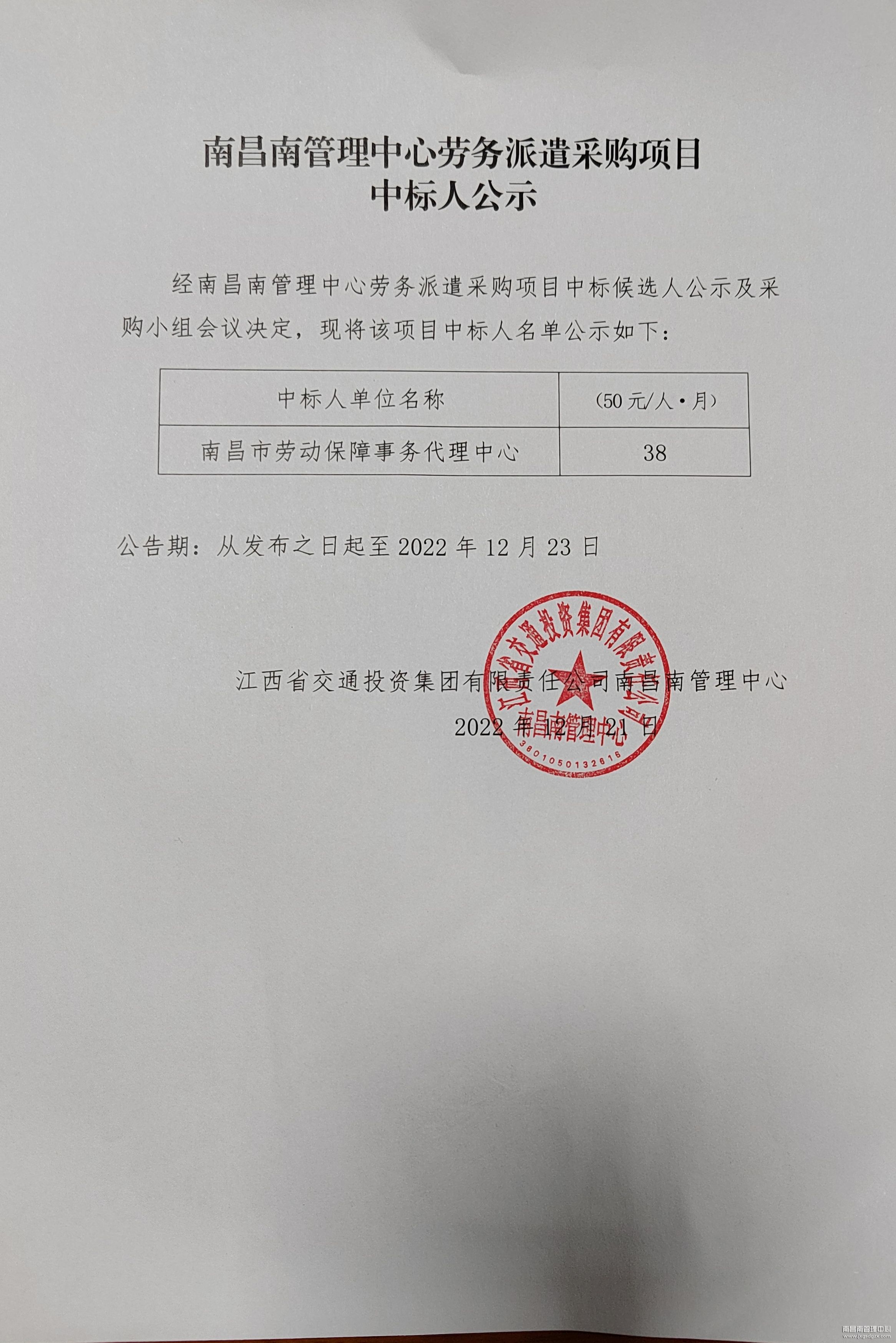 上一篇:南昌南管理中心劳务派遣采购项目中标候选人公示 下一篇:南昌南管理中心2022年养护专用设备采购项目S1标段采购流标公告