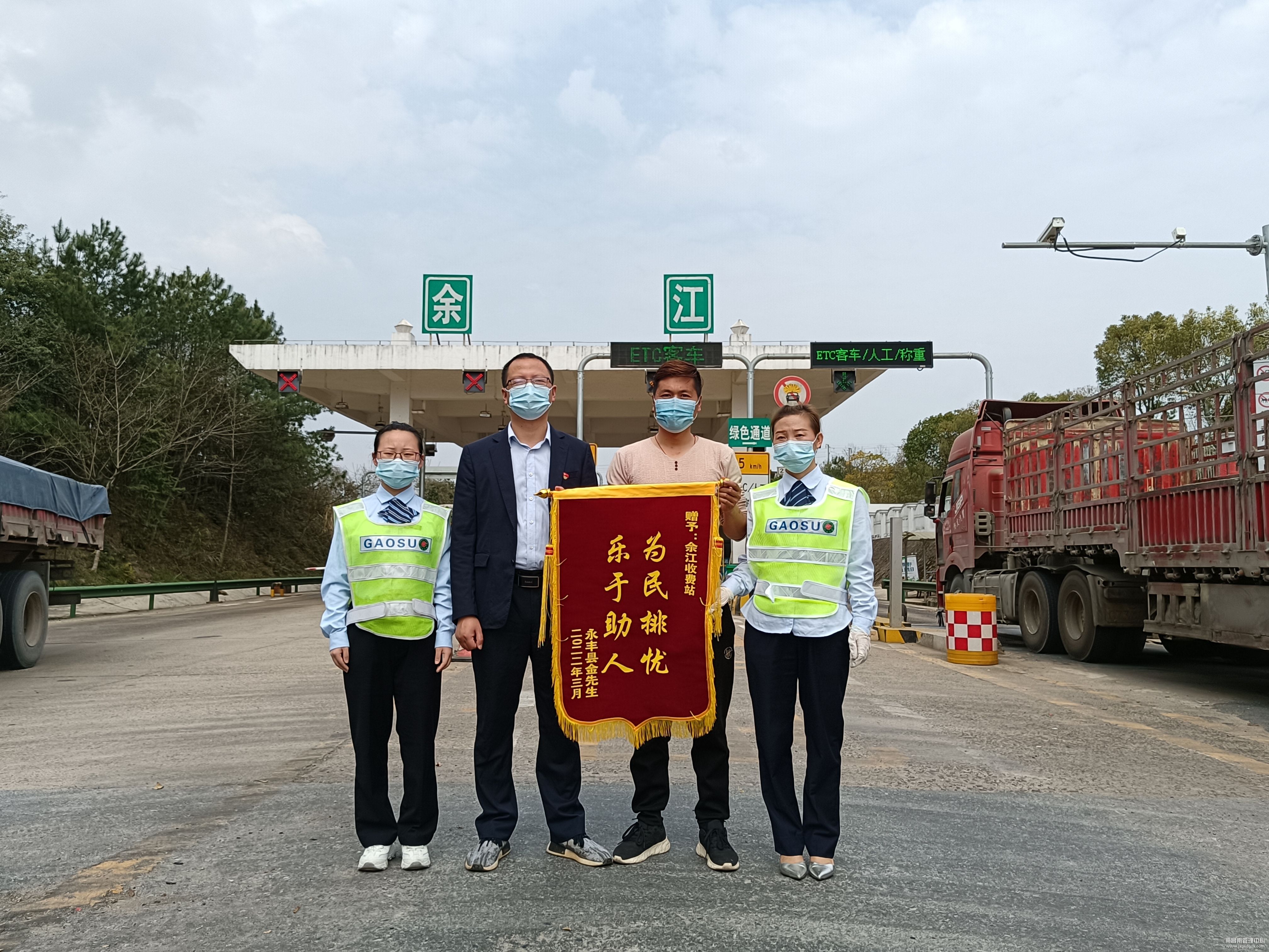 据金师傅回忆,1月14日晚,他驾驶一辆货车行驶到余江收费站出口的时候,车身发生倾斜,车上的货物全部散落在收费车道上,收费工作人员马上帮司机把散落的货物装车,经过一个多小时大家共同的努力将货物全部搬完。“收费站的同志都是好样的,我这次特意从老家赶来,送上这面锦旗,以表达我的感激之情。”金师傅说。