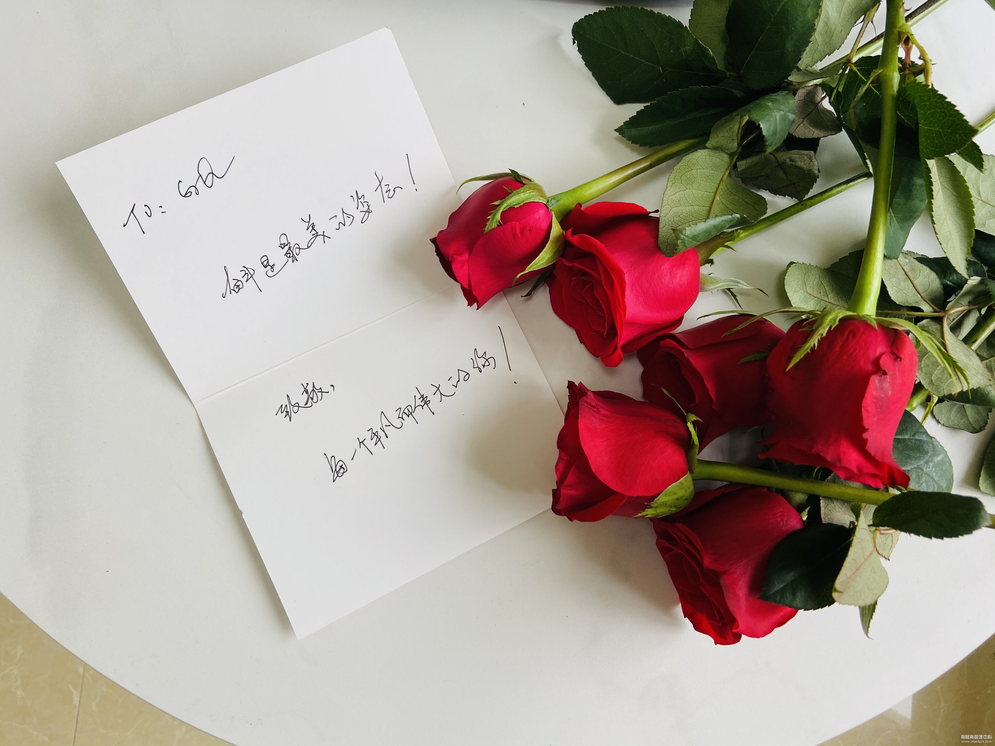 2022年5月20日这天早晨,我和同事们刚到办公室,就发现办公桌上放着一束玫瑰花和一张卡片,卡片上写着:“你们用最真诚的笑容服务着每一位司乘人员,奋斗是最美的姿态。致敬,每一个平凡而伟大的你!”