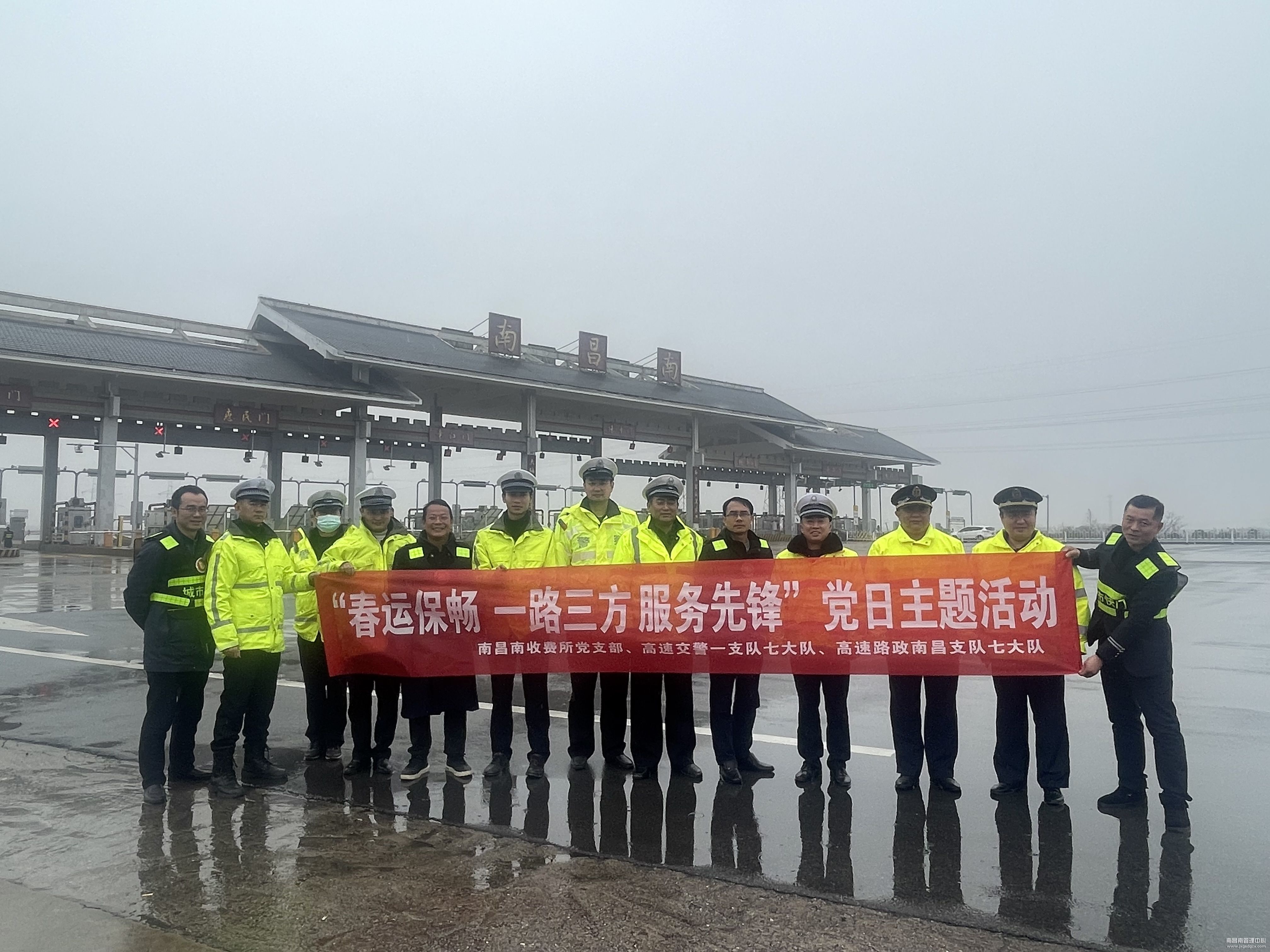 工作现场,南昌南收费所与高速交警联合开展“春运保畅 一路三方 服务先锋”主题党日活动。广大党员当先锋、打头阵,全力以赴投入到现场保畅、车辆引导、路况介绍、解答司乘疑问等多个服务保障环节,切实将收费站打造成广大司乘群众返乡的“连心桥”,春节回家小憩的“温馨驿站”。