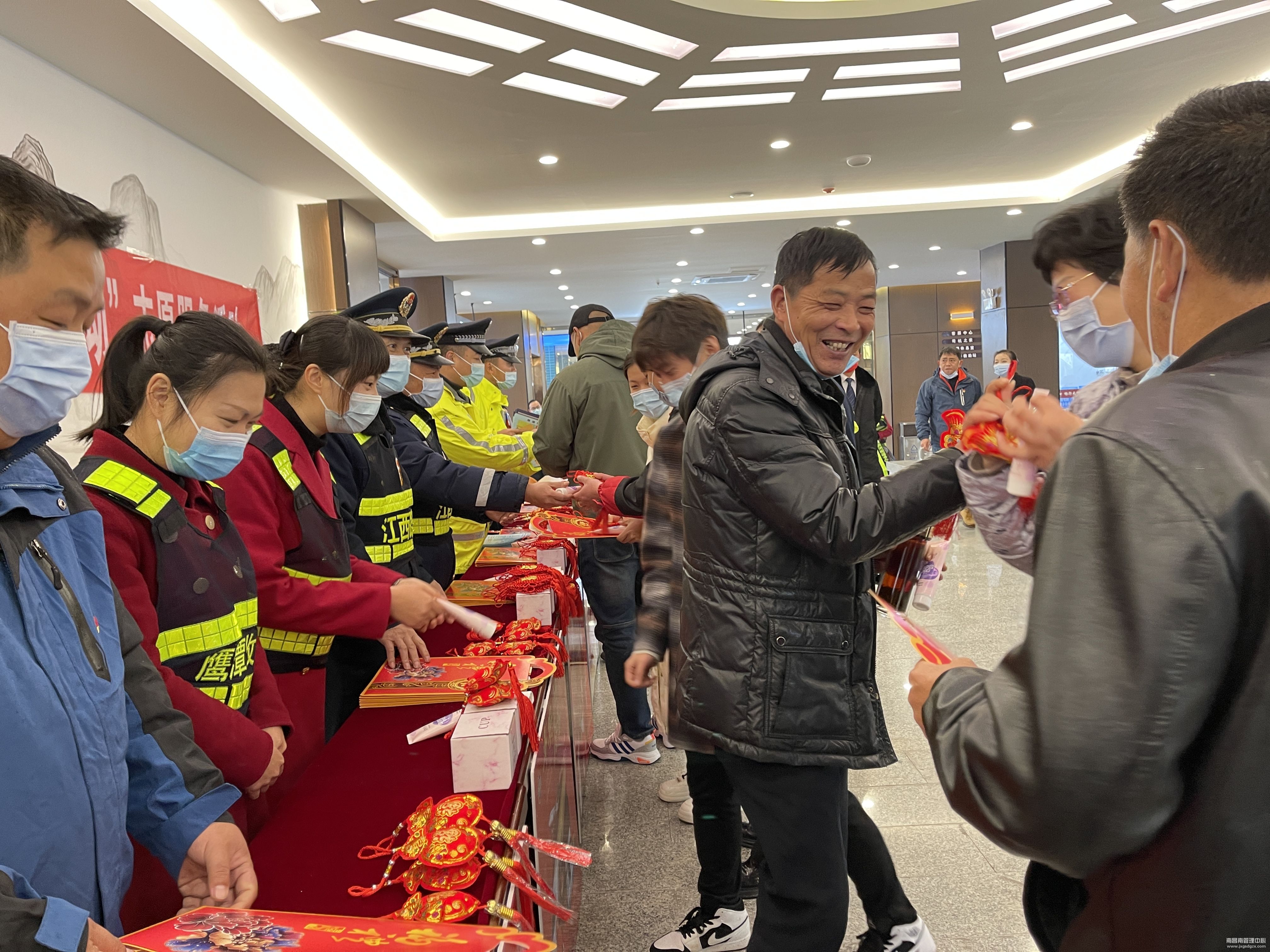活动现场,鹰潭收费所志愿者在服务区设立便民服务台,为来往司乘群众提供引导咨询、便民利民、应急救援等春运志愿服务。志愿者们与来往服务区的群众互动,赠送春联、平安结挂件、护手霜、保温杯等礼品,司乘群众脸上洋溢着幸福的笑容。