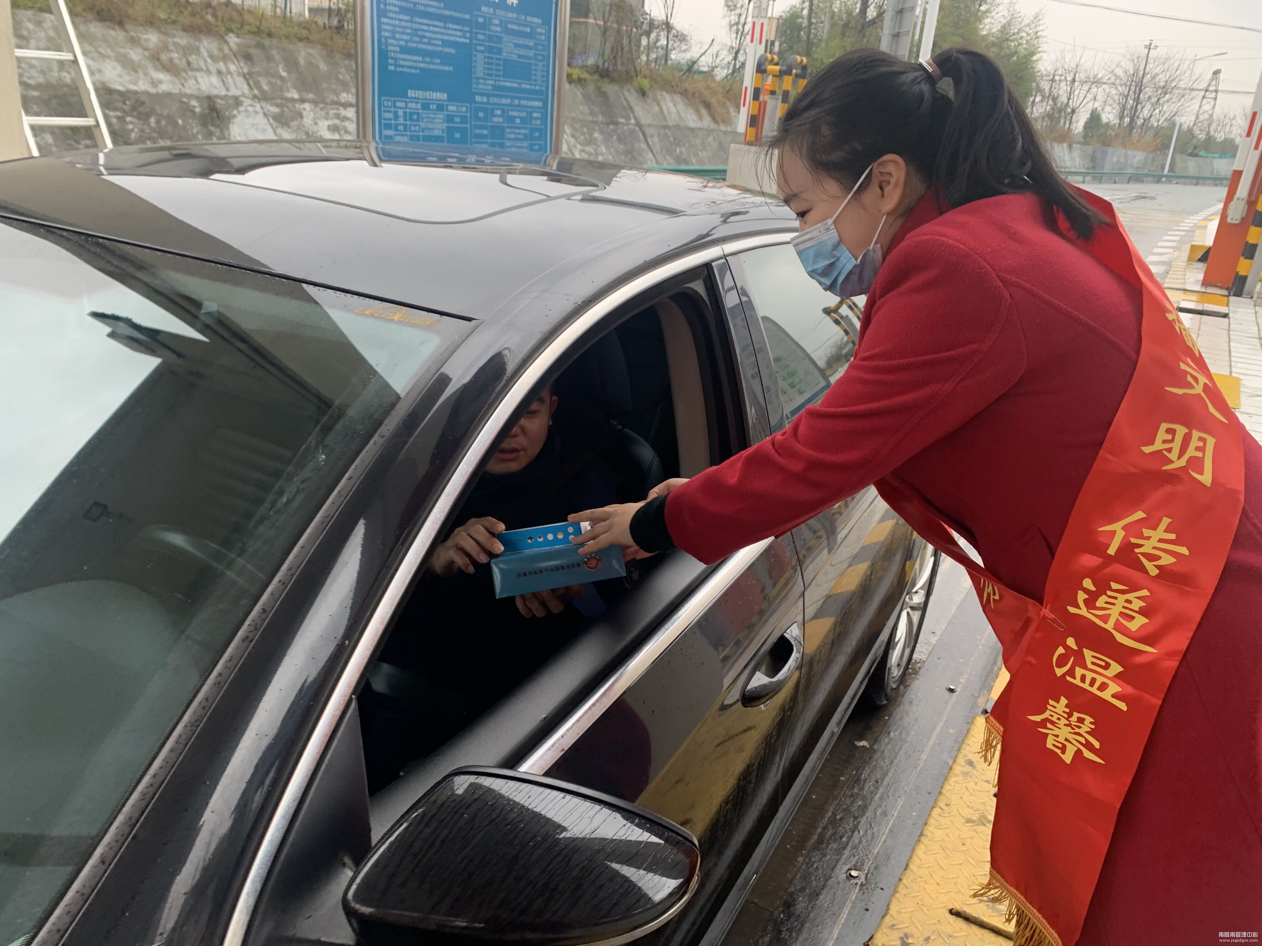在鹰潭西收费站,“红色”志愿者们热情的对来往司乘人员宣传公路保护及春运出行安全知识,并提供姜茶、药品等便民服务,为春运归途增添了温情。“这样的服务很暖心,真的很不错!”一位卡车司机在便民服务点对着志愿者点赞道。