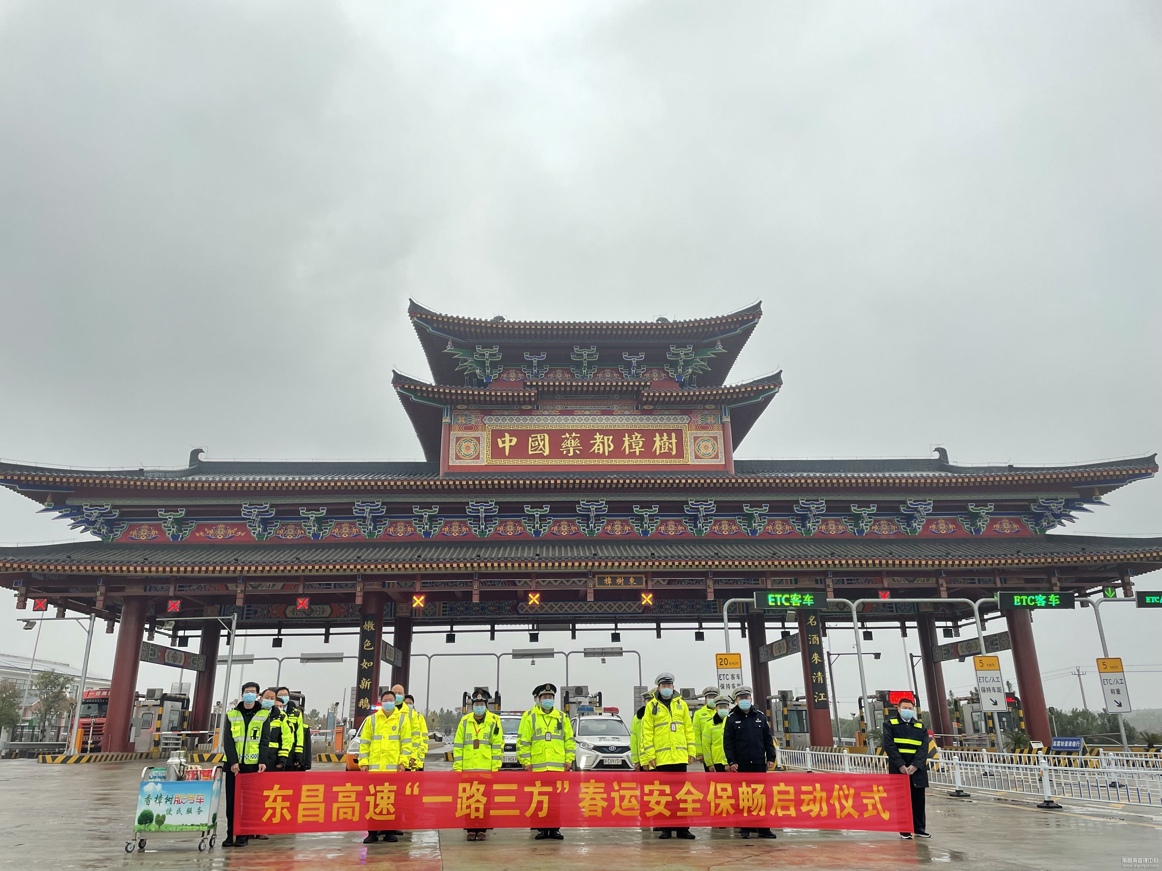 樟树东收费所、玉山收费所、新干北养护站分别联合高速交警、路政及地方交警在樟树东收费站广场,联勤联动进行了2022年“一路三方”春运安全保畅启动仪式。各单位将充分发挥职能优势,强化联合巡查、疏堵救援、排查路况等举措,进一步提升应急处置效率,为旅客营造安全、快捷的行车环境。