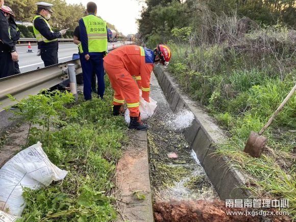 南昌南管理中心成功处理一起危化品车辆高速浓盐酸泄漏事件