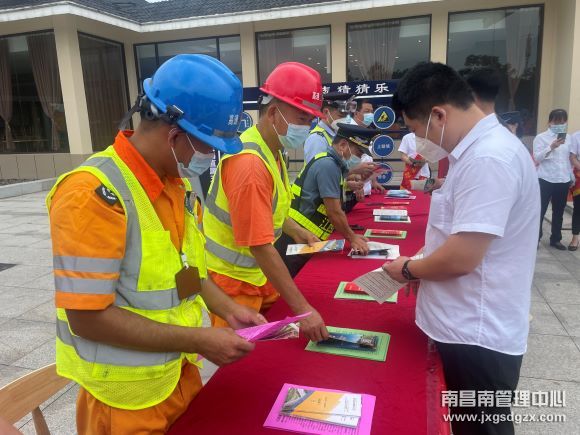 6月16日上午,南昌南管理中心车辆救援队鹰潭中队联合高速交警、路政、养护等多方单位在龙虎山服务区开展了“安全生产月”咨询活动。