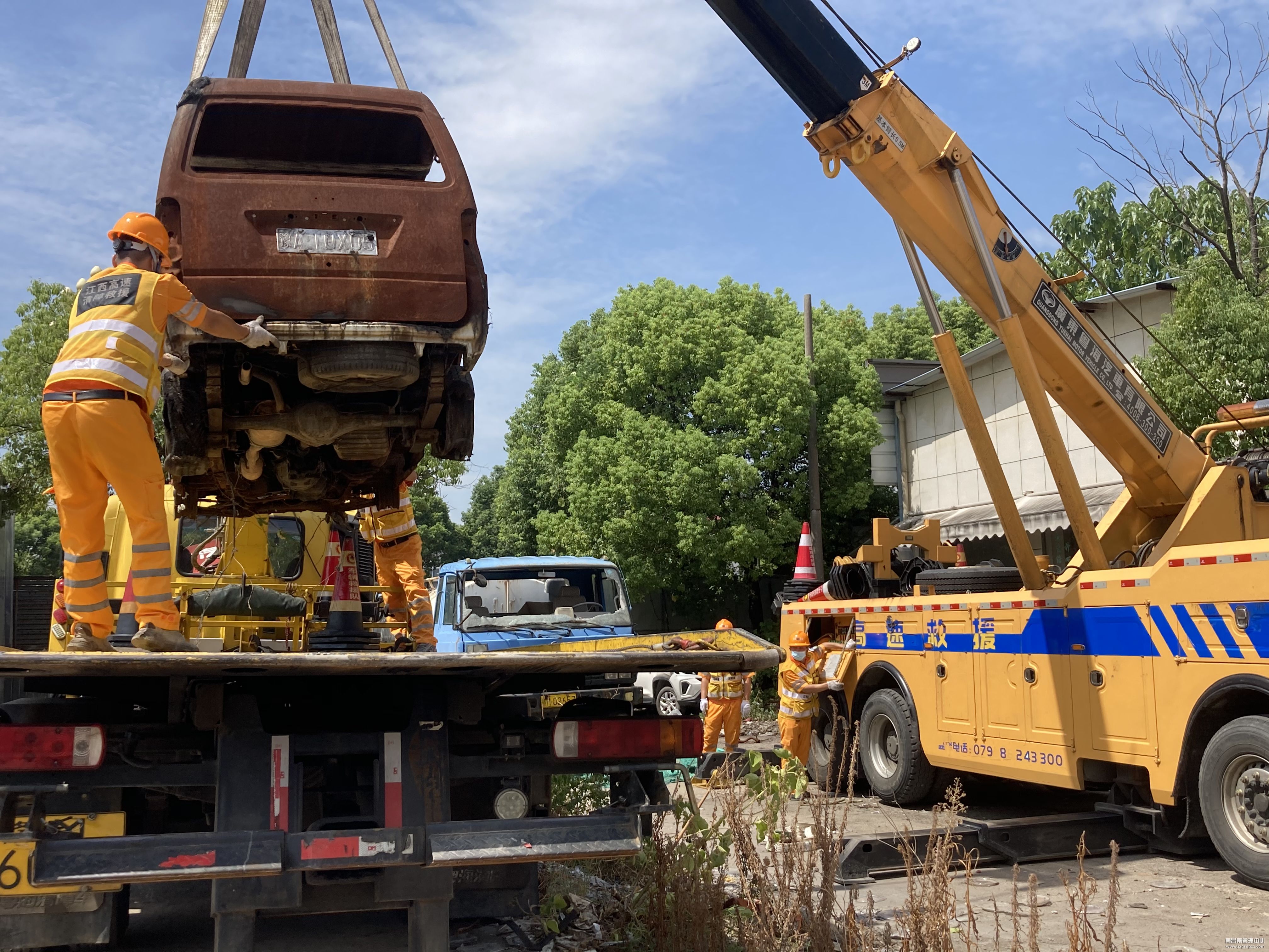 此次应急演练共出动平板拖车一台,旋转吊车一台,人员7人参加此次车辆救援,随着后续现场清理,共计40余分钟完成,道路恢复安全畅通。