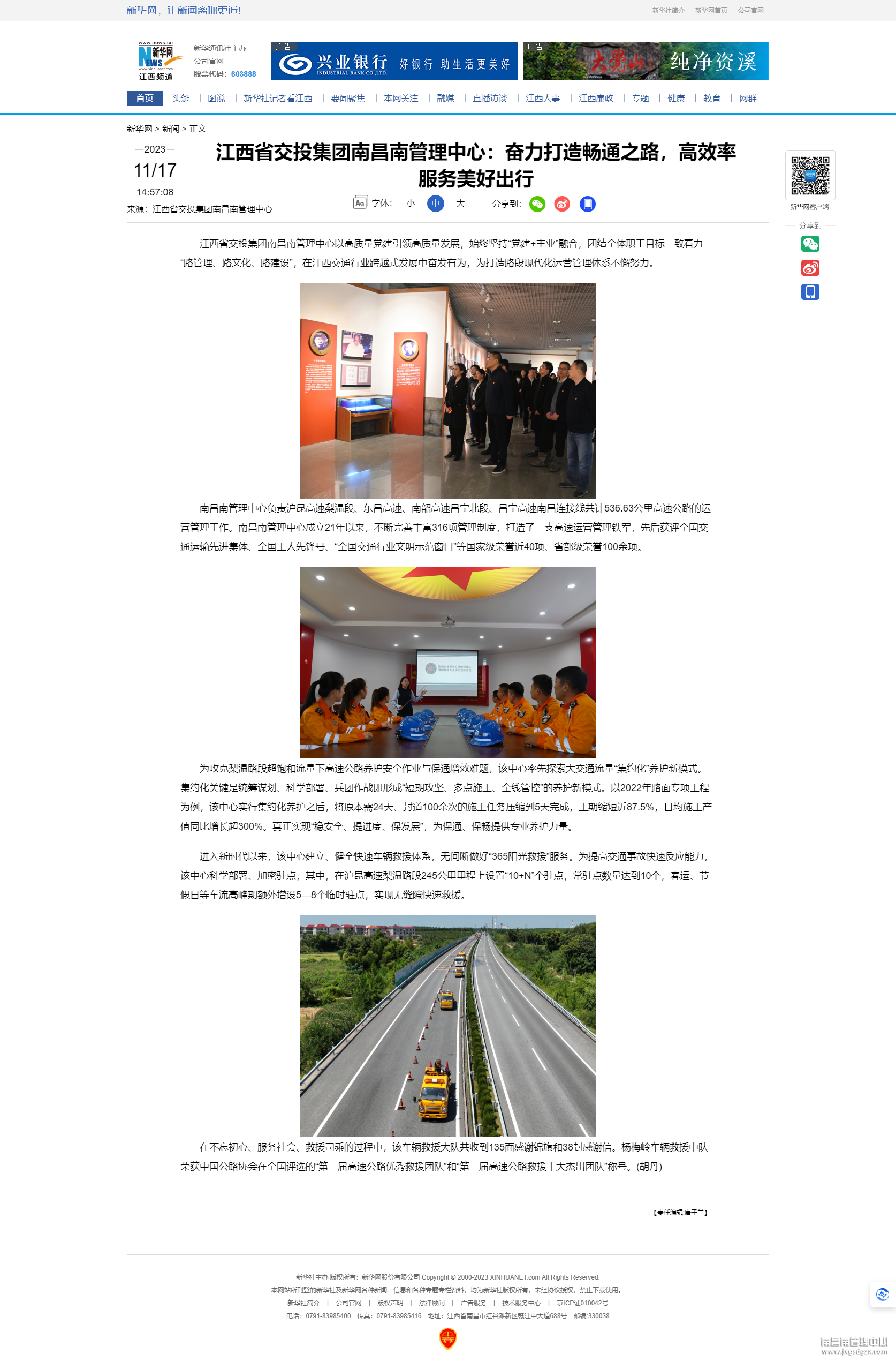 【新华网】江西省交投集团南昌南管理中心:奋力打造畅通之路,高效率服务美好出行