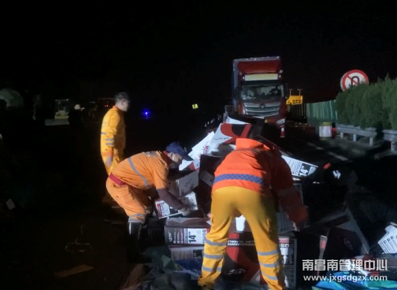 2月27日晚上22点40分左右,沪昆高速浙江方向K498一辆大型半挂货车发生货物散落,占据了所有车道,情况危急。省交通投资集团南昌南车辆救援大队玉山中队迅速出击,成功保障高速路面恢复安全畅通。