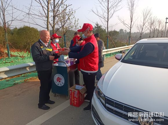 近日,G6011昌宁高速公路北段出现大范围浓雾天气,因雾天交通管制,大量车辆和司乘人员滞留在铁路收费站外广场。铁路收费站青年志愿者积极行动,为滞留司乘送去了温暖。