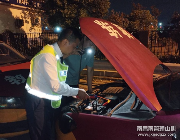 当晚,车主在南昌南站站办前置收费广场休息,因为等待时间过长,用电过度,导致车辆无法启动,车主顿感十分无助。后车主跑至收费岗亭说明情况并寻求帮助,当班员工和班长迅速拿上工具,对车辆进行援助。