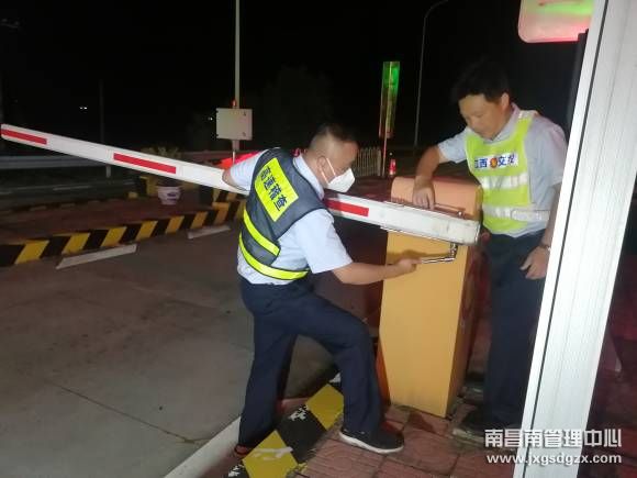 近日,受大风降雨天气影响,南昌南管理中心东乡西收费站出口104道的栏杆突然断裂,不受控制失去响应,该站立即组织人员抢修,保障收费车道正常通行。
