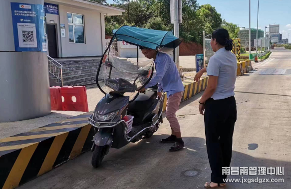 7月27日下午,一男子骑车因导航误导上高速,南昌南管理中心进贤收费站工作人员及时劝阻并帮助其指引路线。