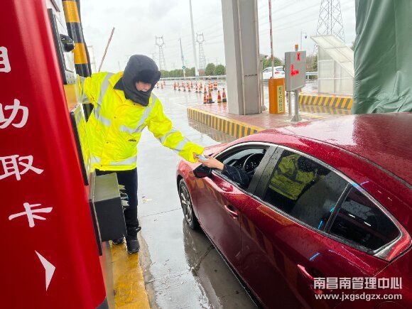 激活设备、赣通卡圈存、办理新设备……在南昌南所综合服务站内,“雷锋帽”们积极为司乘解决ETC设备的小难题,获得了过往司乘的一致好评。在车道上,他们又密切关注过往车辆的通行情况,眼随车动,一旦发现有通行异常的车辆,总能在第一时间来到司机身边,为他们解决异常问题。