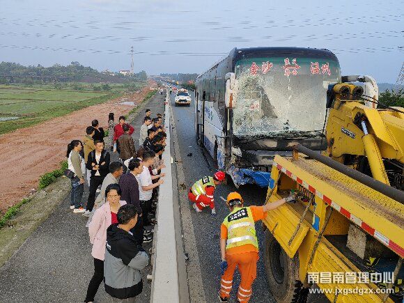 事故发生后,省交投集团南昌南车辆救援大队鹰潭中队迅速响应,第一时间火速赶往现场进行救援。当日6时,该中队组织人员、设备,20分钟抵达了事故现场。