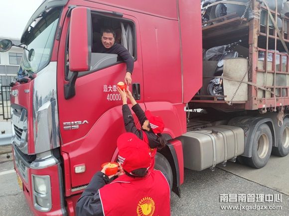 近日,因大雾天气导致能见度骤降,为确保行车安全,高速交警对入口实施临时交通管制,南昌南管理中心新干北收费站收费广场滞留较多的司乘人员,该站工作人员迅速行动起来,为其提供暖心服务。
