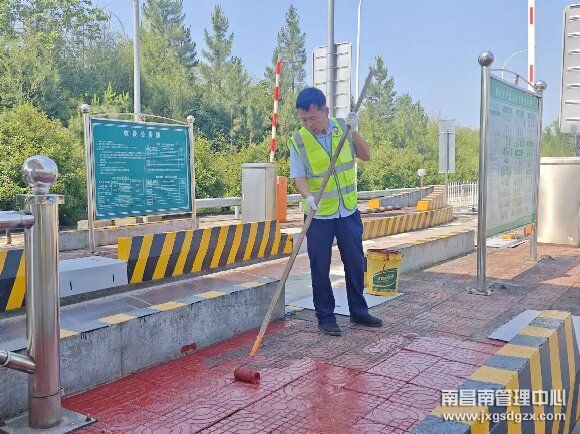 近日,在南昌南管理中心洛市收费站,有这样一位收费员,为了给过往的司乘提供一个更加整洁、美观的通行环境,变身成为“粉刷匠”,给收费车道粉刷亮化。