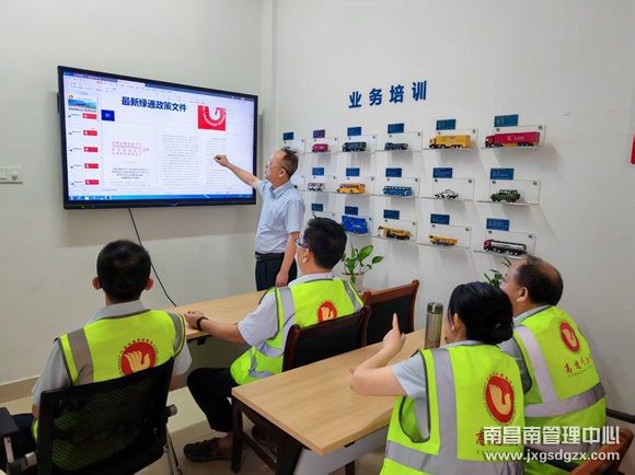 为进一步提升绿通车辆查验服务水平,近日,南昌南管理中心冈上收费站组织全体员工开展绿通车辆减免专项业务培训,全力保障惠民政策精准实施,营造高效有序的通行环境。